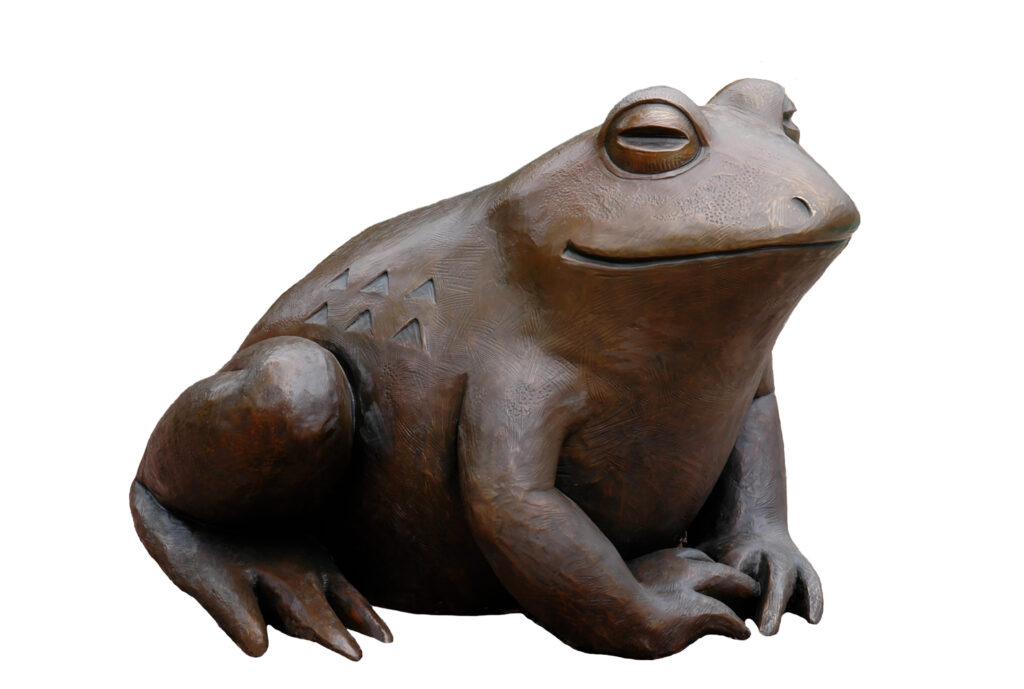 This Frog was initially commissioned by a family who asked that he be cast in Bronze. We are sending a few of his brothers and sisters into the world, cast in Aluminum with a soft-colored or silver patina. Perfect for indoor or outdoor settings away from water spray. People report that he or she is friendly, good at conversation, and guards the property.