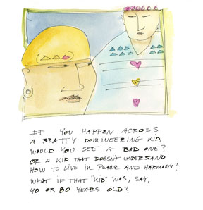![]() ![]() "Peace Book" original hand written version (front piece) ![]() ![]() "Peace Book" original hand written version (Why would I want to kill those ants?) ![]() ![]() "Peace Book" original hand written version (Bratty kid?) ![]() ![]() "Peace Book" original hand written version (I will not fan the flame.) ![]() ![]() "Peace Book" original hand written version (Forking in the right direction.)