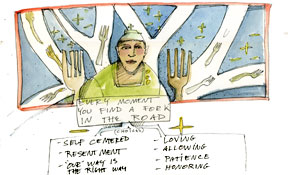 A New Year Happy New Year to you all. The middle of last year my beloved Mac hard drive "bit the dust". Because backing up regularly was not part of my routine, I lost a great many of my e-mail addresses. So if you wonder why you might not of heard from me, that could be the reason. Write to me! The newer operating systems have a handy dandy super duper back up system that makes it simple as pie to back up every single bitty thing on the entire computer. Very cool. One of the best things I did last year was to write and illustrate, or illuminate, two hand made books, the first was about a "Little White Horse", and the other about Peace. Some of the Peace book pages are shown here, I'd like to revise it with type, instead of my crazy handwriting, and plan to do that sometime this year. It would be great fun to get it published. We'll see. The work was inspired by an invitation from my friend, Julie Frankel, to be part of the Steynberg Gallery's Peace Library exhibit~ hand bound artists books on the theme of war, peace and the state of our nation. I chose to focus on our own personal inner peace. This past year I also donated paintings to four art auctions, something I haven't done for several years, it just seemed like a good thing to do. (The Heart and Soul Animal Sanctuary, the Wolf foundation, both here in Santa Fe, New Mexico, CAPs, a fundraiser for the schools on the Central Coast in California, and The Furr Ball, a fundraiser for cats in the Los Angeles area.) I've been goofing off a bit, art wise, giving riding lessons and helping friends with their young horses, as well as working with mine, living my life as art, not necessarily living my life to create artwork. Doing that book reconnected me to my love of books and typography, and illustration. I'm thinking of it more as "illumination" now, and will be doing more things along that line. For now I'm at work on some one-of-a kind hand built sculptures, things that are not intended to be duplicated with a mold into bronze or any other medium. I'm looking forward to painting them, combining my love of color and design with sculpting. My other half, Tom Reno, now has a website, showing his beautiful new abstract paintings - very different from my work, but you may enjoy it, or know someone else who would like to see it. www.Tom Scott Reno.com. If you like this little newsletter, and know of anyone else that might enjoy my artwork, please, pass it along to them for me. Check out the paintings and sculptures that are for sale on the other pages of this website, along with the notecards in the "Gift Shop". Any inquires and or purchases are warmly and thankfully accepted! That's all for now, back to work, lots of love, see you in a while! ~ Paula Feedback? Questions? Talk to me...! |