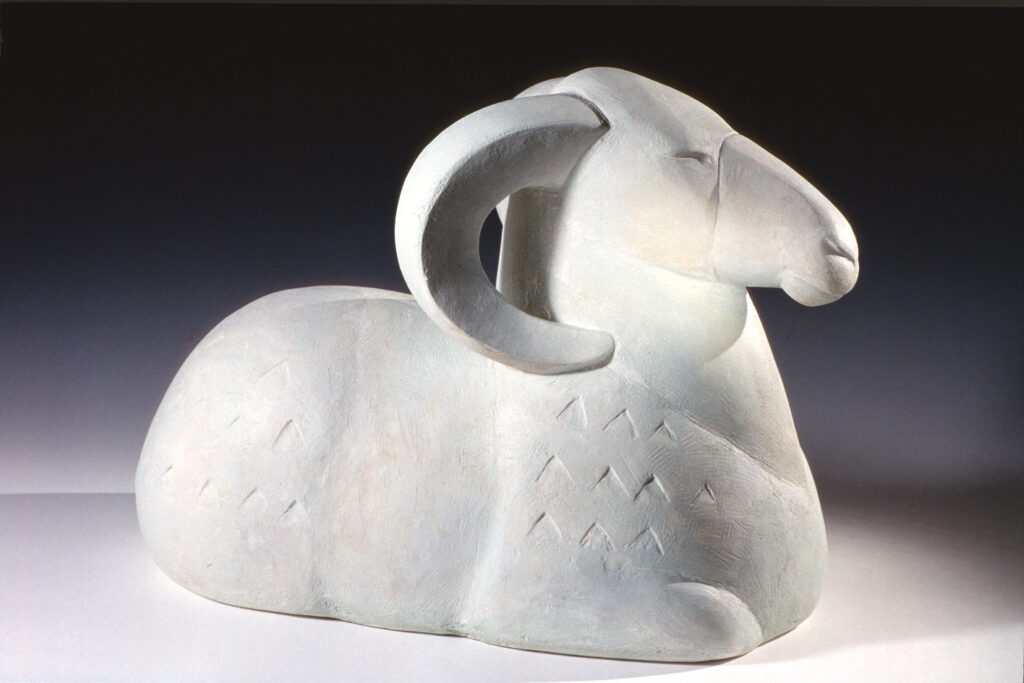The first version of this ram was in Ferro-Cement, one of my first attempts at working that medium, which must be worked relatively quickly. I wanted to see it in a more refined version, so created this one in a cellulose sculpting compound, lovely to work with, but not good for outdoor applications. I’m planning one more version, to be cast in bronze or aluminum.