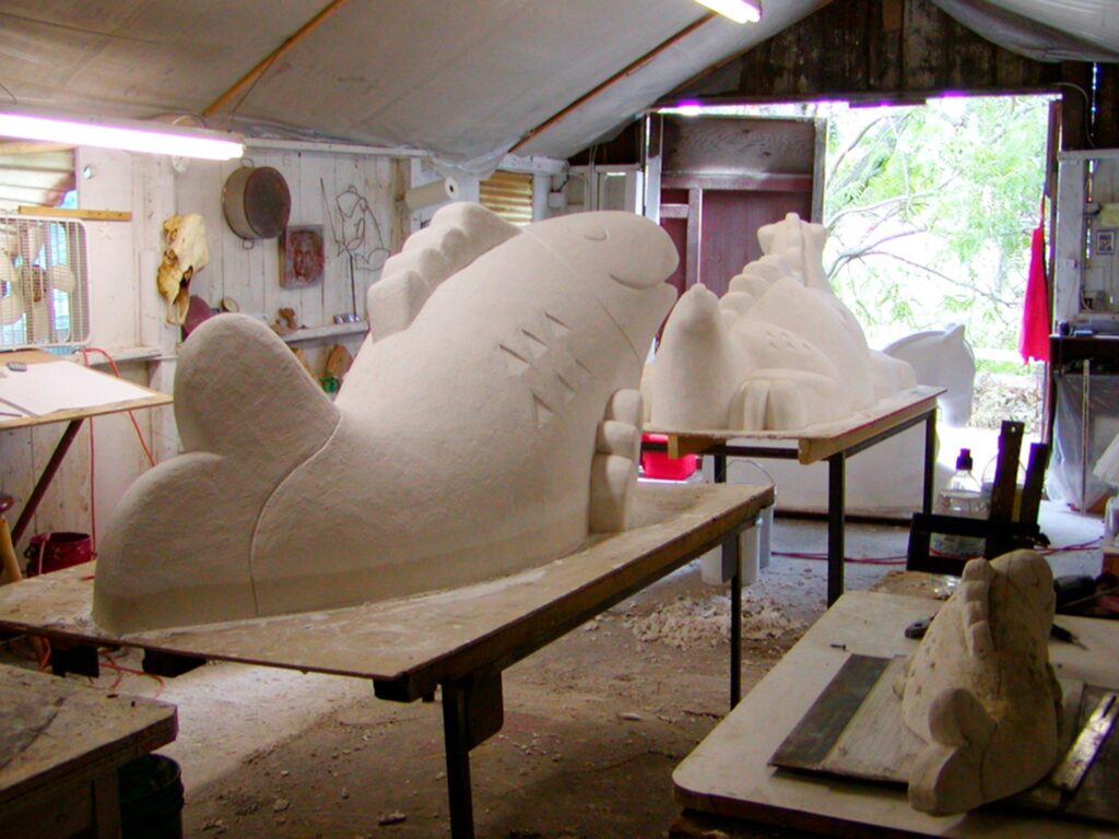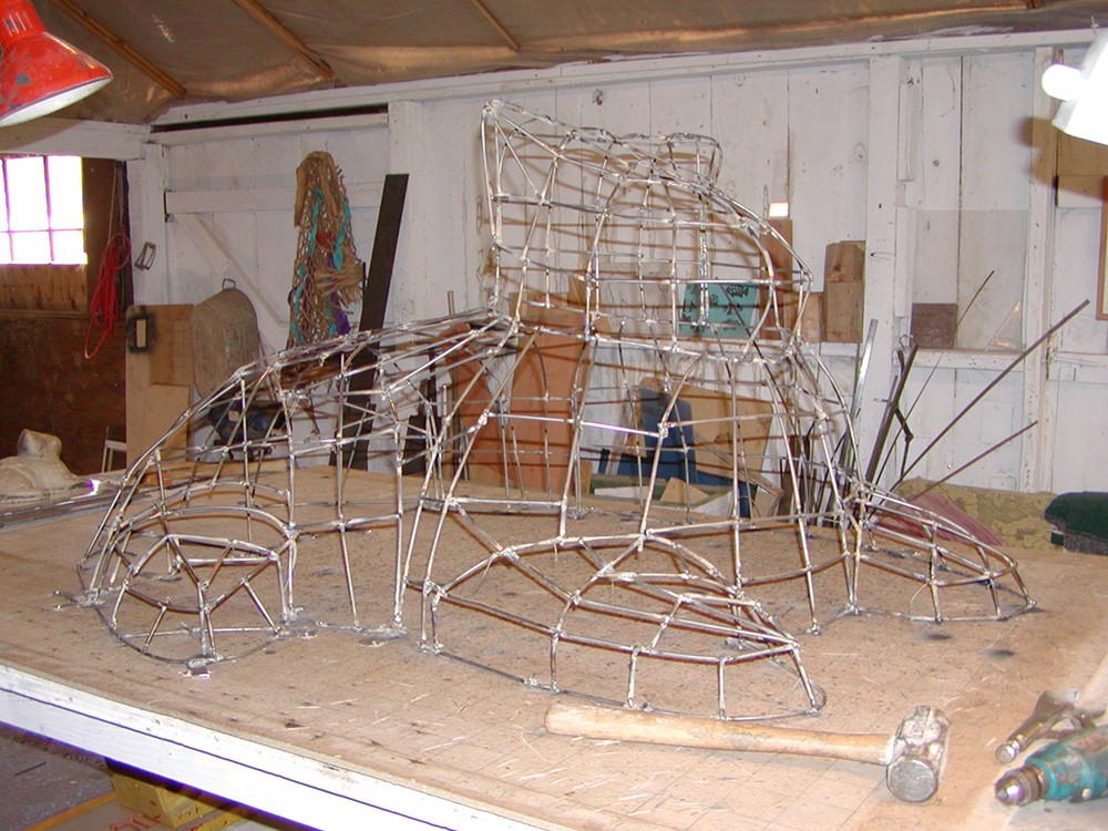 covered with expanded metal lathe. If you look carefully, you will see the original maquette, the small-sized sculpture, which the enlargement was based upon.